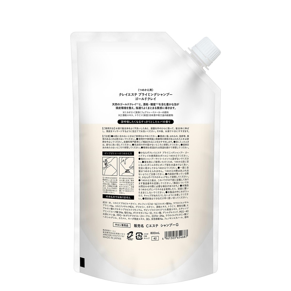 商品名:クレイエステ プライミングシャンプー ゴールドクレイ 800ml(パウチ)